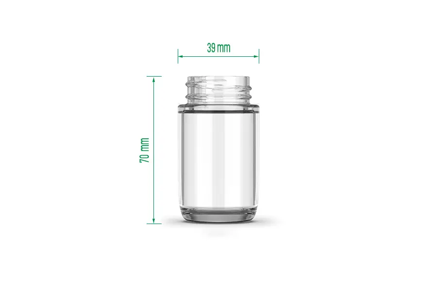 The Pre-Roll Glass Jar D39*H70mm is a compact pre-roll container designed to hold smaller cannabis joints. Made with durable glass and a CR cap option.