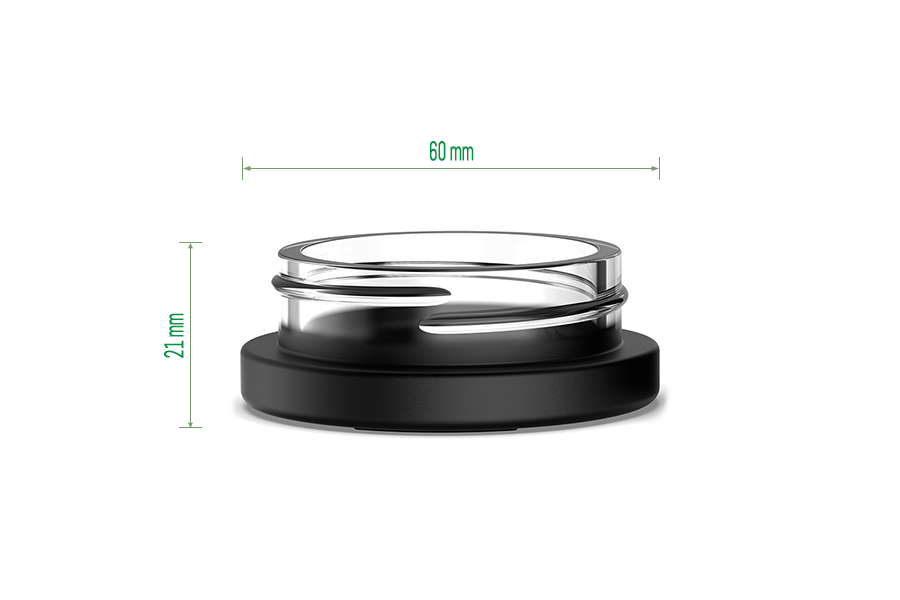 Crafted with a sturdy glass base and paired with a precision-fit ABS child-resistant (CR) lid, the jar ensures full regulatory adherence while delivering a professional, upscale presentation. Its D60 × 21 mm profile offers a balance between portability and capacity, making it an excellent choice for brands offering medium-volume concentrate products.